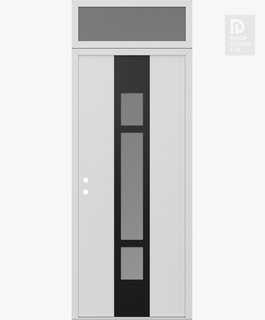 Modern Steel Front Door DIAMOND A9 36" X 96" BLACK/WHITE FROSTED GLASS PANEL BLACK LHI WITH TRANSOM FROSTED GLASS