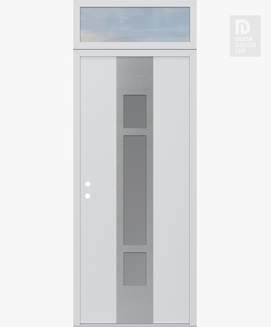 Modern Steel Front Door DIAMOND A9 36" X 96" BLACK/WHITE FROSTED GLASS PANEL STAINLESS STEEL LHI WITH TRANSOM CLEAR GLASS