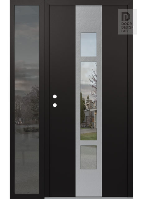 Modern Steel Front Door DIAMOND A9 48" X 80" BLACK/BLACK CLEAR GLASS PANEL STAINLESS STEEL LHI WITH SIDELITE MIRRORED GLASS
