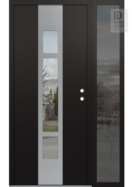 Modern Steel Front Door DIAMOND A9 48" X 80" BLACK/BLACK CLEAR GLASS PANEL STAINLESS STEEL RHI WITH SIDELITE MIRRORED GLASS