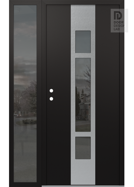 Modern Steel Front Door DIAMOND A9 48" X 80" BLACK/BLACK MIRRORED GLASS PANEL STAINLESS STEEL LHI WITH SIDELITE MIRRORED GLASS