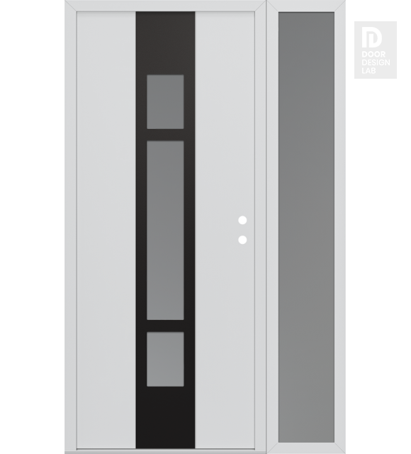 Modern Steel Front Door DIAMOND A9 48" X 80" BLACK/WHITE FROSTED GLASS PANEL BLACK RHI WITH SIDELITE FROSTED GLASS