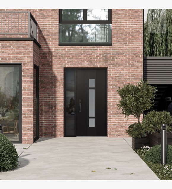 The double-chamber glazing combined with polystyrene insulation reduces heat loss by 40-50% compared to conventional exterior doors: