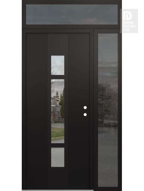 Modern Steel Front Door DIAMOND A9 48" X 96" BLACK/BLACK CLEAR GLASS PANEL BLACK RHI WITH SIDELITE AND TRANSOM MIRRORED GLASS