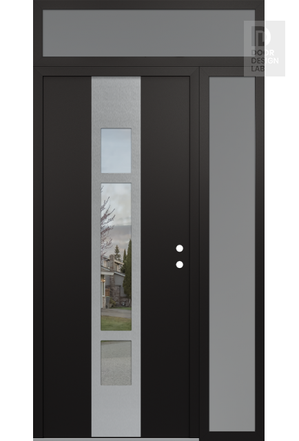 Modern Steel Front Door DIAMOND A9 48" X 96" BLACK/BLACK CLEAR GLASS PANEL STAINLESS STEEL RHI WITH SIDELITE AND TRANSOM FROSTED GLASS