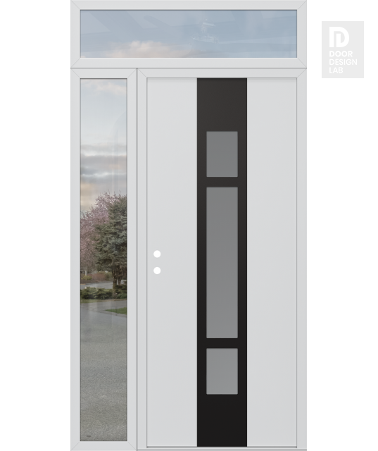 Modern Steel Front Door DIAMOND A9 48" X 96" BLACK/WHITE FROSTED GLASS PANEL BLACK LHI WITH SIDELITE AND TRANSOM CLEAR GLASS