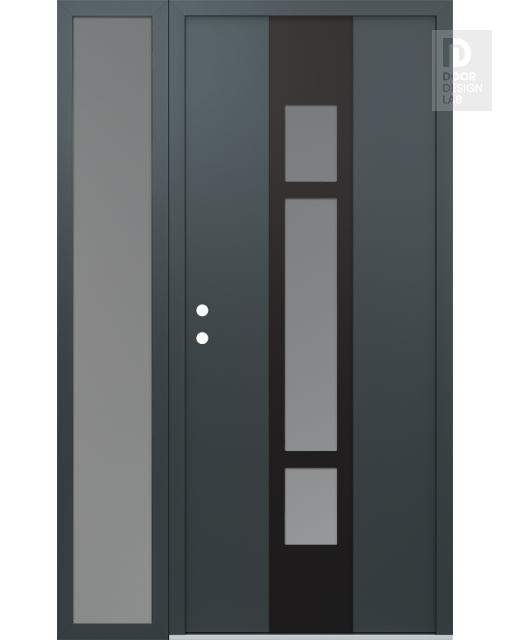 Modern Steel Front Door DIAMOND A9 50" X 80" ANTHRACITE/ANTHRACITE FROSTED GLASS PANEL BLACK LHI WITH SIDELITE FROSTED GLASS