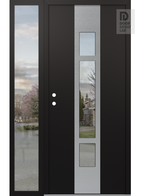 Modern Steel Front Door DIAMOND A9 50" X 80" BLACK/BLACK CLEAR GLASS PANEL STAINLESS STEEL LHI WITH SIDELITE CLEAR GLASS