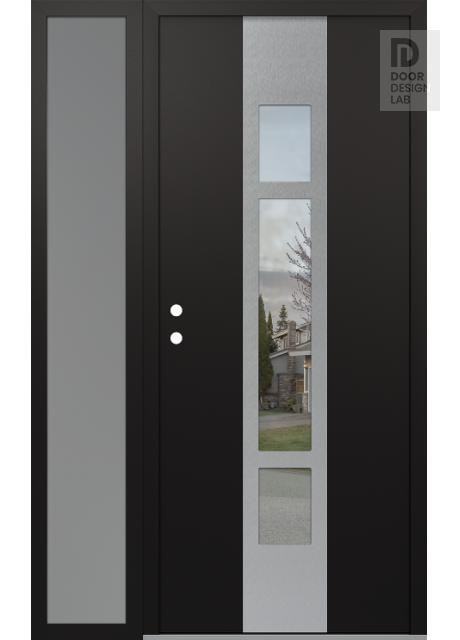 Modern Steel Front Door DIAMOND A9 50" X 80" BLACK/BLACK CLEAR GLASS PANEL STAINLESS STEEL LHI WITH SIDELITE FROSTED GLASS