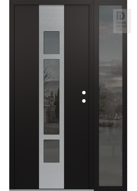 Modern Steel Front Door DIAMOND A9 50" X 80" BLACK/BLACK MIRRORED GLASS PANEL STAINLESS STEEL RHI WITH SIDELITE MIRRORED GLASS