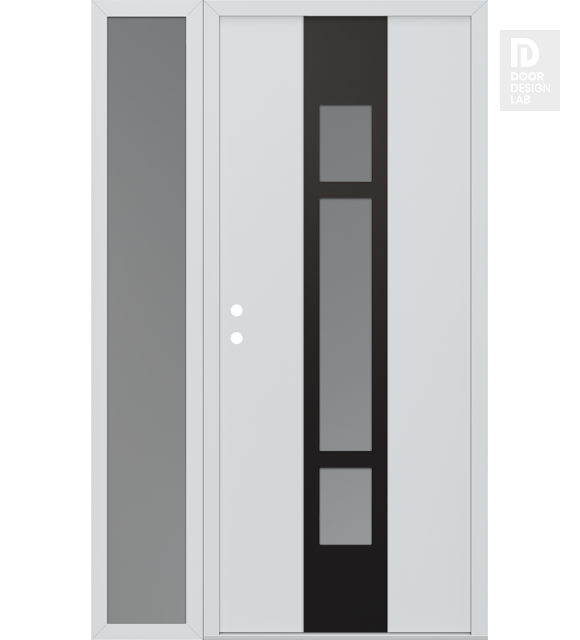 Modern Steel Front Door DIAMOND A9 50" X 80" BLACK/WHITE FROSTED GLASS PANEL BLACK LHI WITH SIDELITE FROSTED GLASS