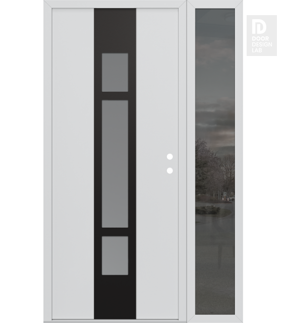 Modern Steel Front Door DIAMOND A9 50" X 80" BLACK/WHITE FROSTED GLASS PANEL BLACK RHI WITH SIDELITE MIRRORED GLASS