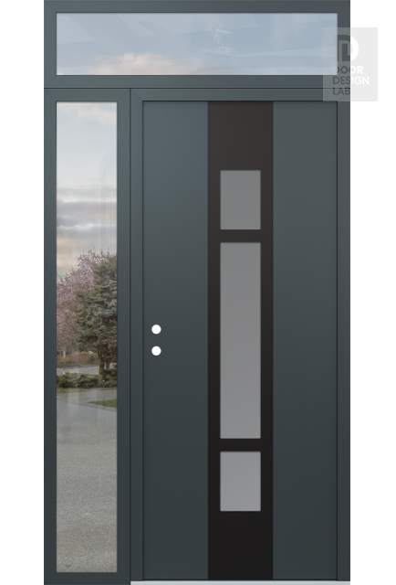 Modern Steel Front Door DIAMOND A9 50" X 96" ANTHRACITE/ANTHRACITE FROSTED GLASS PANEL BLACK LHI WITH SIDELITE AND TRANSOM CLEAR GLASS