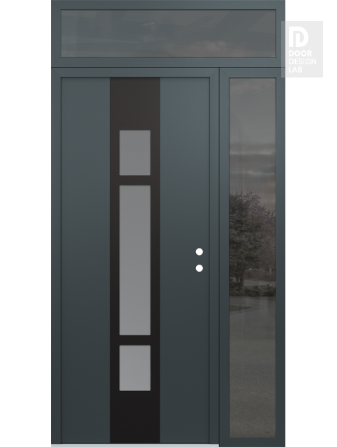 Modern Steel Front Door DIAMOND A9 50" X 96" ANTHRACITE/ANTHRACITE FROSTED GLASS PANEL BLACK RHI WITH SIDELITE AND TRANSOM MIRRORED GLASS