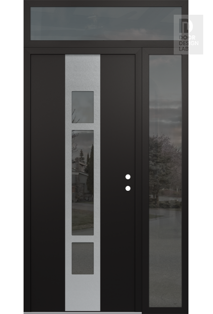 Modern Steel Front Door DIAMOND A9 50" X 96" BLACK/BLACK MIRRORED GLASS PANEL STAINLESS STEEL RHI WITH SIDELITE AND TRANSOM MIRRORED GLASS