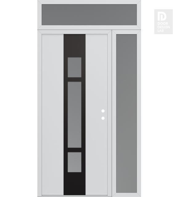 Modern Steel Front Door DIAMOND A9 50" X 96" BLACK/WHITE FROSTED GLASS PANEL BLACK RHI WITH SIDELITE AND TRANSOM FROSTED GLASS