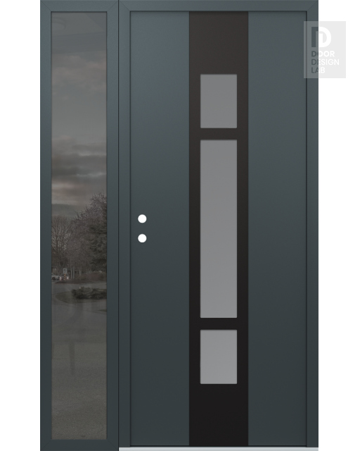 Modern Steel Front Door DIAMOND A9 52" X 80" ANTHRACITE/ANTHRACITE FROSTED GLASS PANEL BLACK LHI WITH SIDELITE MIRRORED GLASS