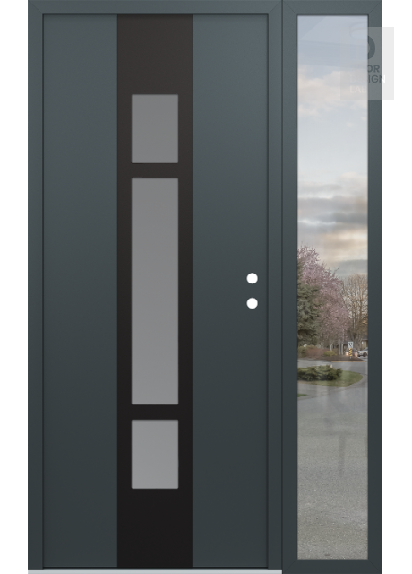 Modern Steel Front Door DIAMOND A9 52" X 80" ANTHRACITE/ANTHRACITE FROSTED GLASS PANEL BLACK RHI WITH SIDELITE CLEAR GLASS