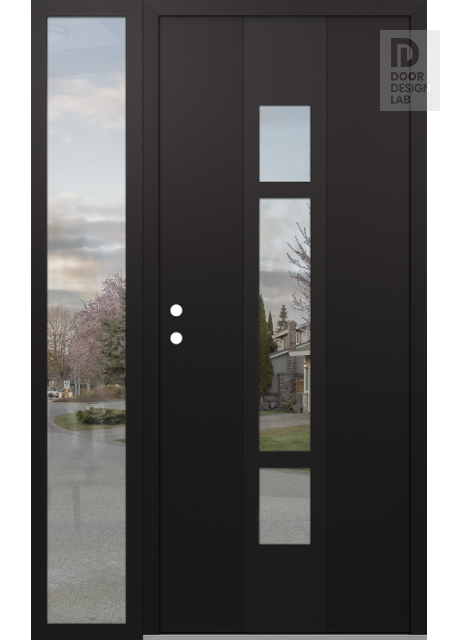 Modern Steel Front Door DIAMOND A9 52" X 80" BLACK/BLACK CLEAR GLASS PANEL BLACK LHI WITH SIDELITE CLEAR GLASS