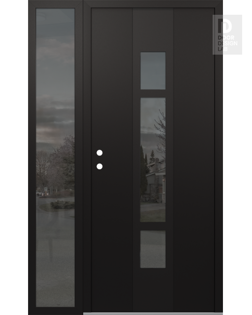 Modern Steel Front Door DIAMOND A9 52" X 80" BLACK/BLACK MIRRORED GLASS PANEL BLACK LHI WITH SIDELITE MIRRORED GLASS