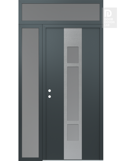Modern Steel Front Door DIAMOND A9 52" X 96" ANTHRACITE/ANTHRACITE FROSTED GLASS PANEL STAINLESS STEEL LHI WITH SIDELITE AND TRANSOM FROSTED GLASS