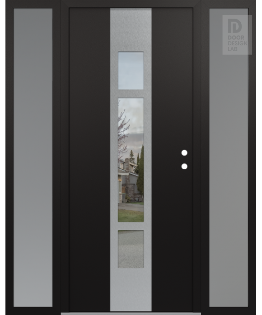 Modern Steel Front Door DIAMOND A9 60" X 80" BLACK/BLACK CLEAR GLASS PANEL STAINLESS STEEL RHI WITH 2 SIDELITES FROSTED GLASS