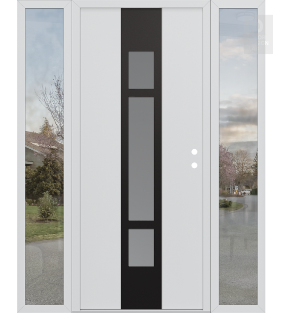 Modern Steel Front Door DIAMOND A9 60" X 80" BLACK/WHITE FROSTED GLASS PANEL BLACK RHI WITH 2 SIDELITES CLEAR GLASS