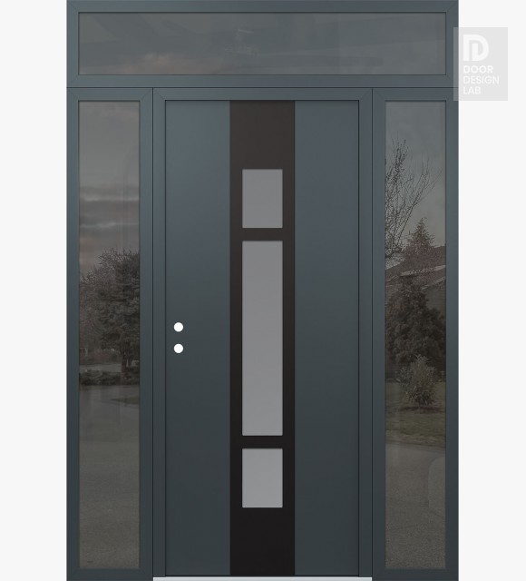 Modern Steel Front Door DIAMOND A9 60" X 96" ANTHRACITE/ANTHRACITE FROSTED GLASS PANEL BLACK LHI WITH 2 SIDELITES AND TRANSOM MIRRORED GLASS