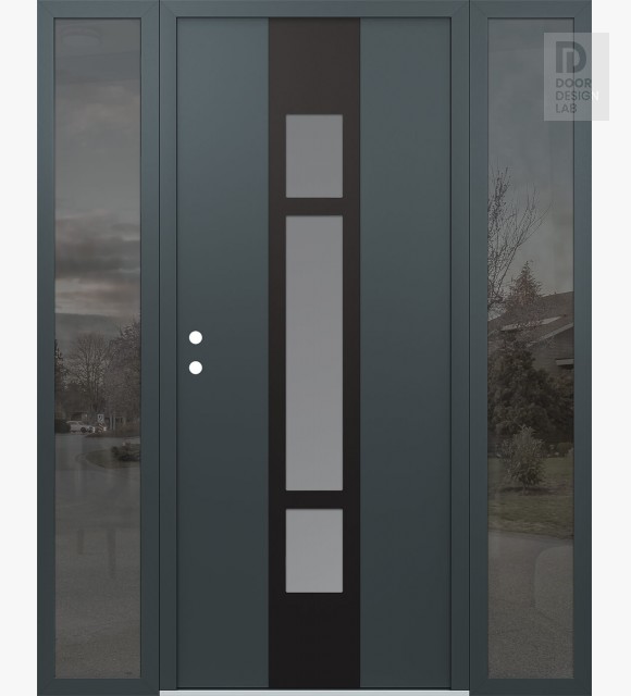Modern Steel Front Door DIAMOND A9 64" X 80" ANTHRACITE/ANTHRACITE FROSTED GLASS PANEL BLACK LHI WITH 2 SIDELITES MIRRORED GLASS