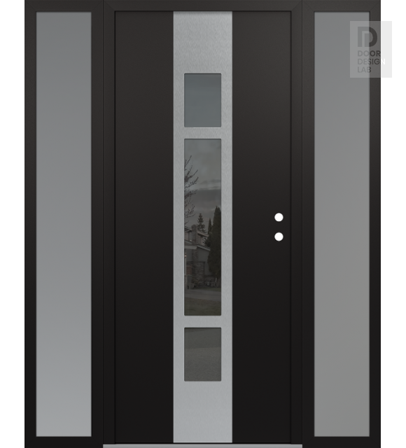 Modern Steel Front Door DIAMOND A9 64" X 80" BLACK/BLACK MIRRORED GLASS PANEL STAINLESS STEEL RHI WITH 2 SIDELITES FROSTED GLASS