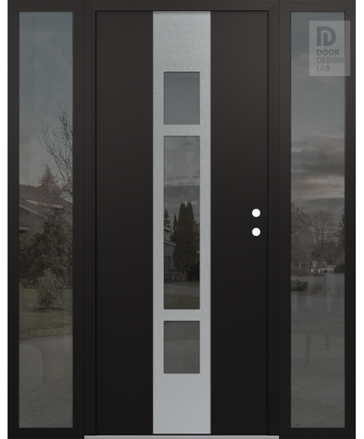 Modern Steel Front Door DIAMOND A9 64" X 80" BLACK/BLACK MIRRORED GLASS PANEL STAINLESS STEEL RHI WITH 2 SIDELITES MIRRORED GLASS