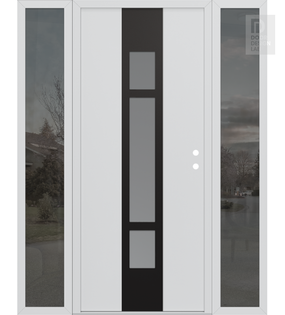 Modern Steel Front Door DIAMOND A9 64" X 80" BLACK/WHITE FROSTED GLASS PANEL BLACK RHI WITH 2 SIDELITES MIRRORED GLASS