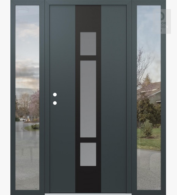 Modern Steel Front Door DIAMOND A9 68" X 80" ANTHRACITE/ANTHRACITE FROSTED GLASS PANEL BLACK LHI WITH 2 SIDELITES CLEAR GLASS