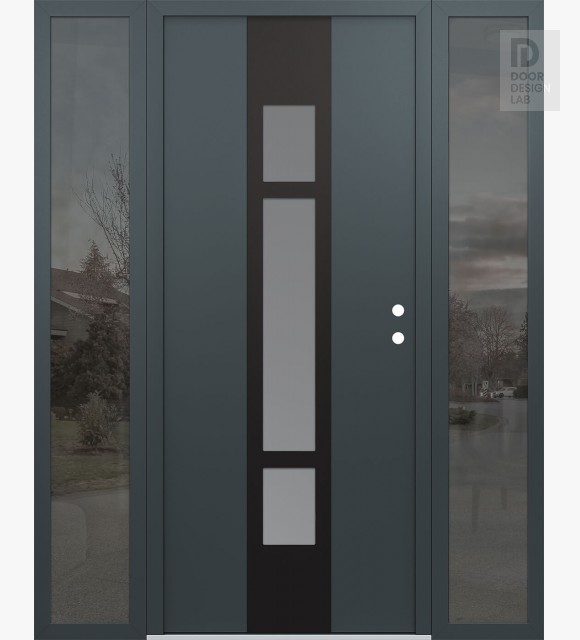Modern Steel Front Door DIAMOND A9 68" X 80" ANTHRACITE/ANTHRACITE FROSTED GLASS PANEL BLACK RHI WITH 2 SIDELITES MIRRORED GLASS