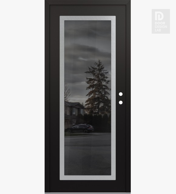 Modern Steel Front Door Diamond C1 36" x 80" black/black mirrored Glass Panel stainless steel LHI