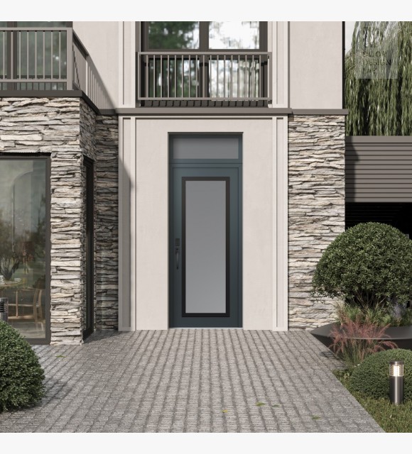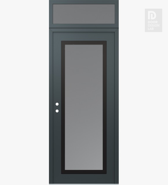 Modern Steel Front Door Diamond C1 36" x 96" anthracite/anthracite frosted Glass Panel black RHI with Transom frosted Glass