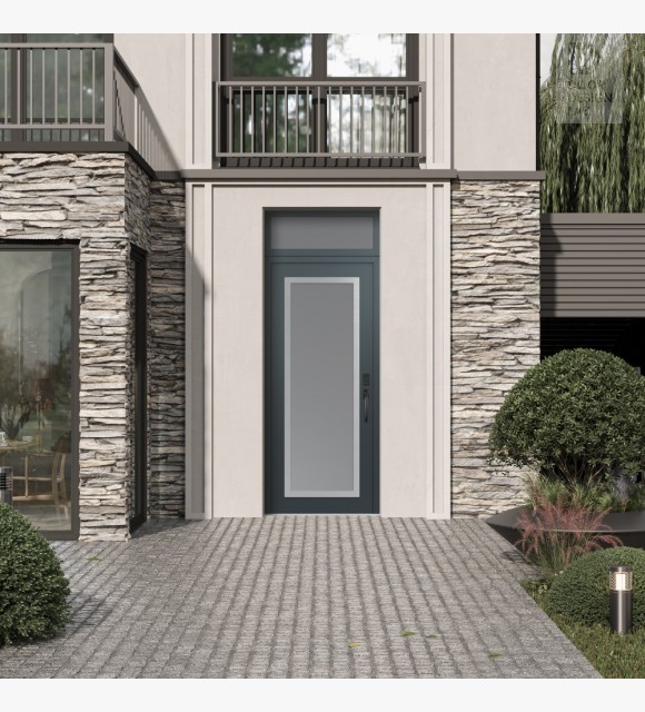 Modern Steel Front Door Diamond C1 36" x 96" anthracite/anthracite frosted Glass Panel stainless steel LHI with Transom frosted Glass