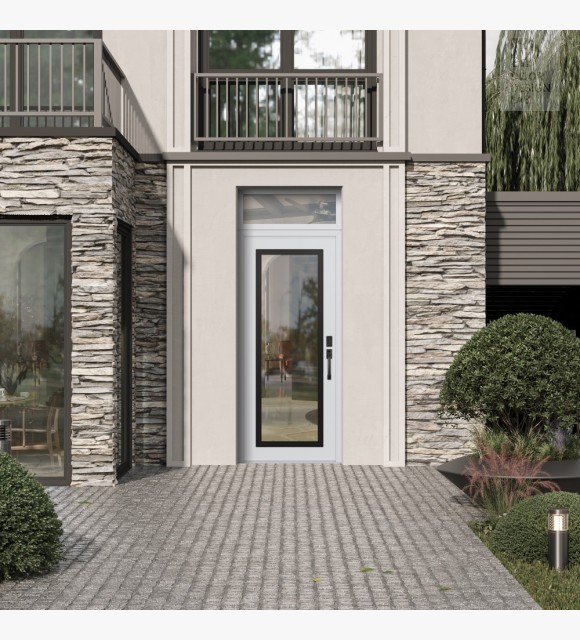 The double-chamber glazing combined with polystyrene insulation reduces heat loss by 40-50% compared to conventional exterior doors: