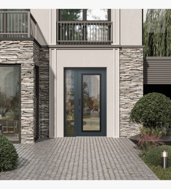 The double-chamber glazing combined with polystyrene insulation reduces heat loss by 40-50% compared to conventional exterior doors: