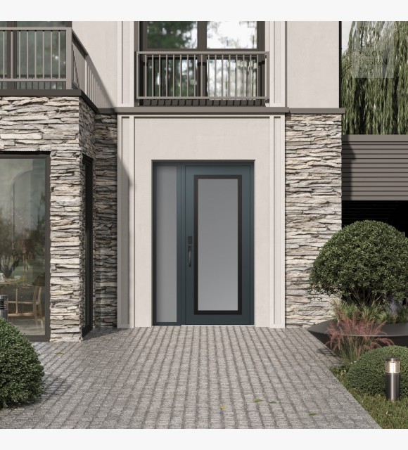 The double-chamber glazing combined with polystyrene insulation reduces heat loss by 40-50% compared to conventional exterior doors: