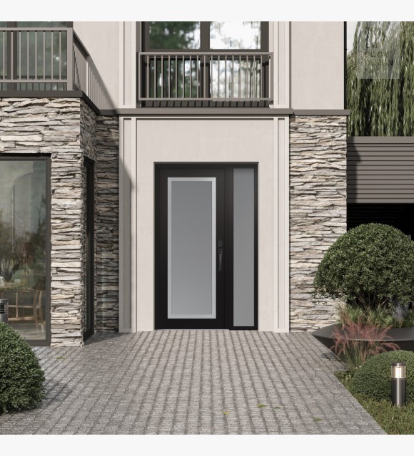 The double-chamber glazing combined with polystyrene insulation reduces heat loss by 40-50% compared to conventional exterior doors: