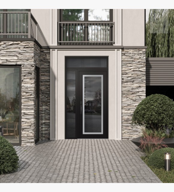 The double-chamber glazing combined with polystyrene insulation reduces heat loss by 40-50% compared to conventional exterior doors: