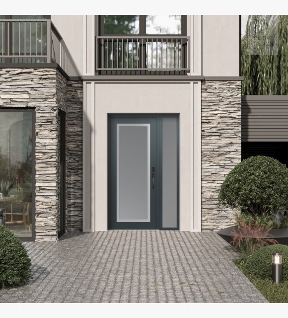 The double-chamber glazing combined with polystyrene insulation reduces heat loss by 40-50% compared to conventional exterior doors:
