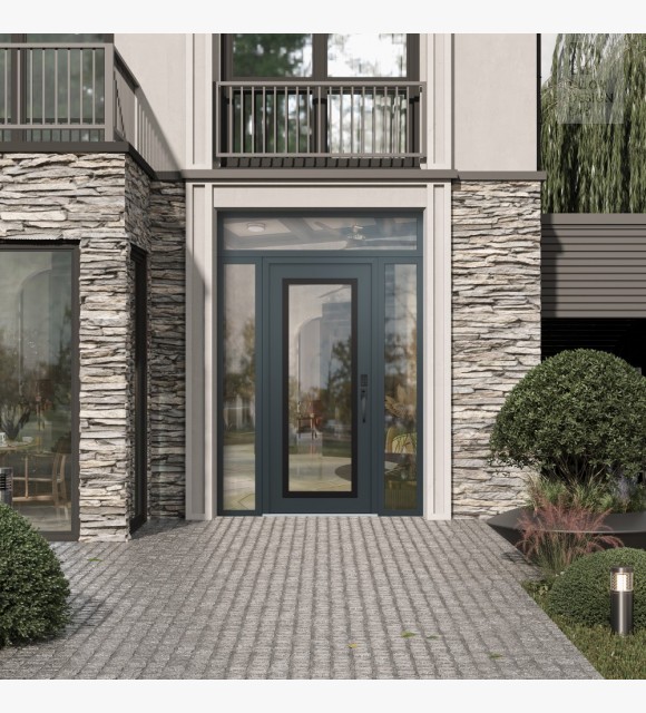 The double-chamber glazing combined with polystyrene insulation reduces heat loss by 40-50% compared to conventional exterior doors: