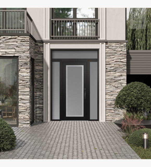 The double-chamber glazing combined with polystyrene insulation reduces heat loss by 40-50% compared to conventional exterior doors: