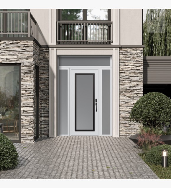 The double-chamber glazing combined with polystyrene insulation reduces heat loss by 40-50% compared to conventional exterior doors:
