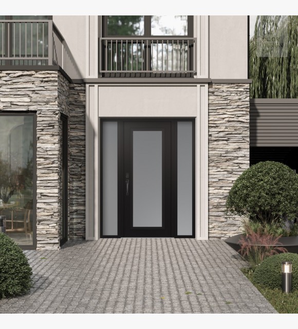The double-chamber glazing combined with polystyrene insulation reduces heat loss by 40-50% compared to conventional exterior doors:
