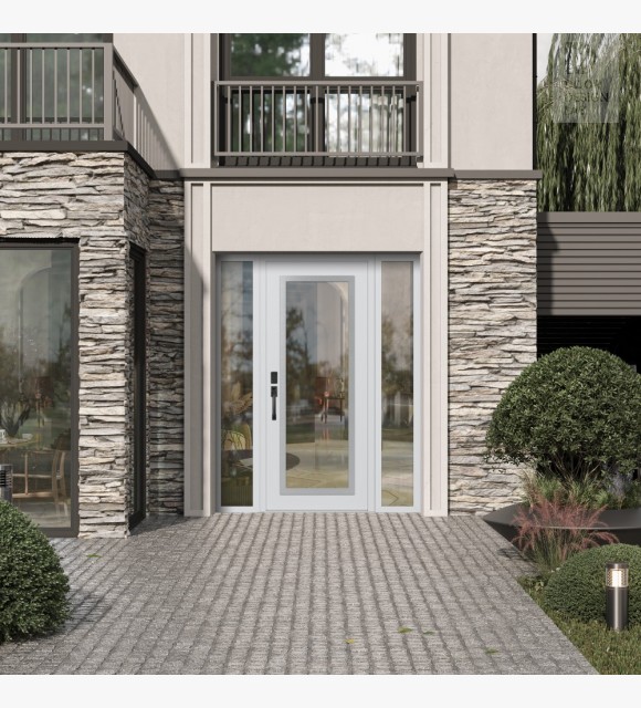 The double-chamber glazing combined with polystyrene insulation reduces heat loss by 40-50% compared to conventional exterior doors: