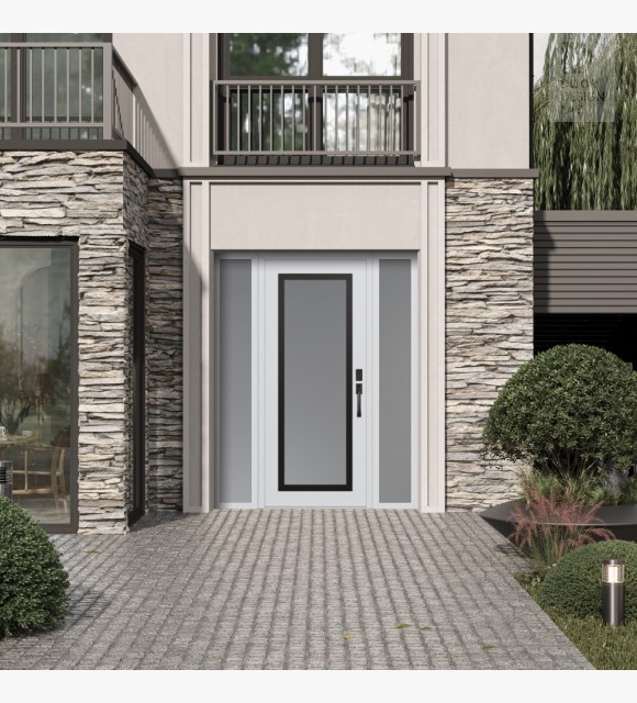 The double-chamber glazing combined with polystyrene insulation reduces heat loss by 40-50% compared to conventional exterior doors: