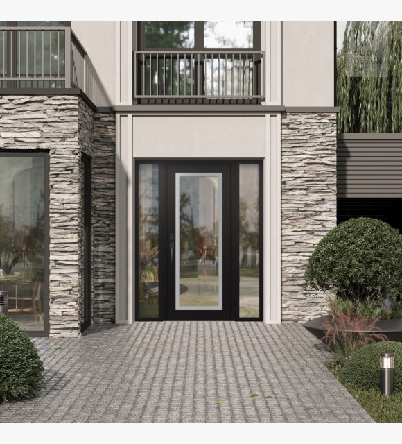 The double-chamber glazing combined with polystyrene insulation reduces heat loss by 40-50% compared to conventional exterior doors: